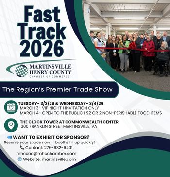 This year, the highly anticipated showcase returns to the Clock Tower at the Commonwealth Centre,300 Franklin Street, Martinsville, VA. This location offers a spacious floor plan with 100+ exhibitor spaces!